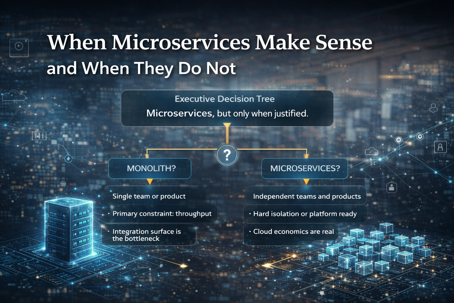 A distributed architecture is an explicit trade. You gain independent deployment and scaling. You also gain more failure surfaces: networks, queues, retries, timeouts, schema drift, identity propagation, and third party dependencies. The question for leaders is not “will we have failures”. The question is “how fast do we detect, isolate, and recover without customer harm”.